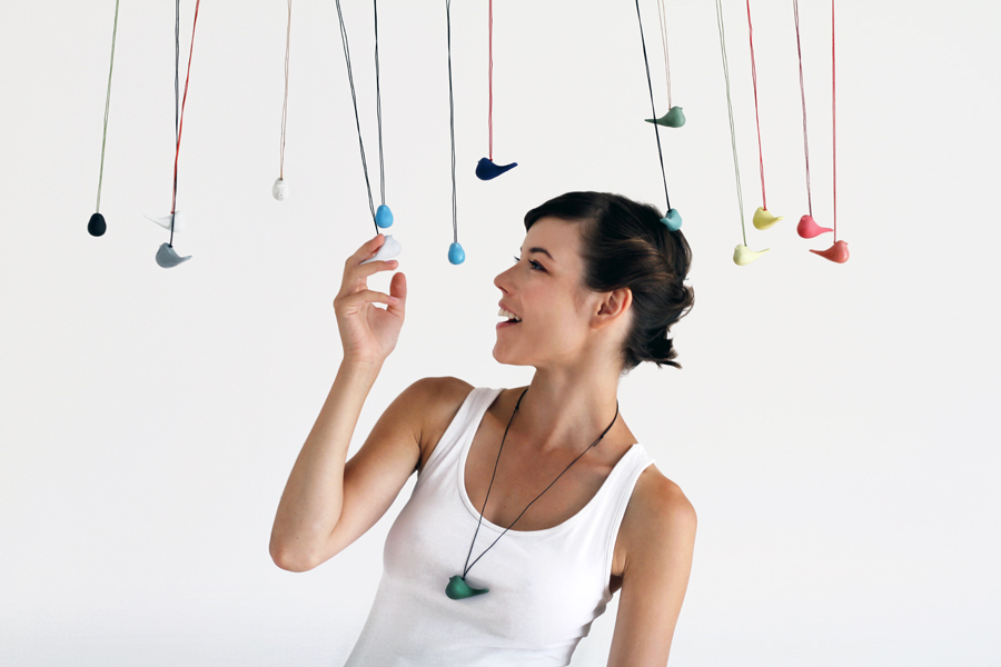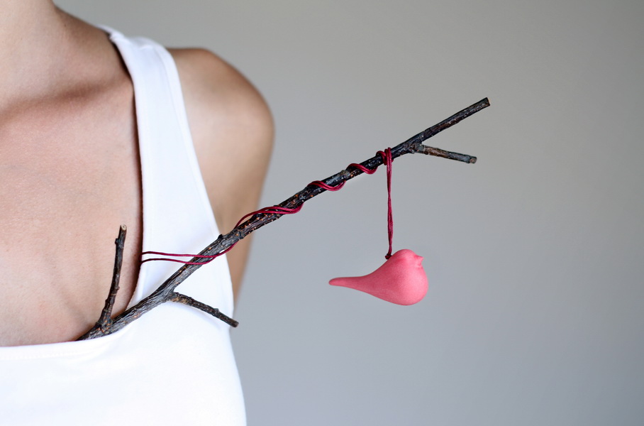 The bird pendant is made of pigmented porcelain and spring thoughts. It comes in countless colour nuances while each colour repeats only in few pieces. The bird is hand casted and carefully hand finished. There are both glossy and matt surface finishing. The pendant hangs on waxed cotton cord and has adjustable lenght thanks to a special sliding knot.